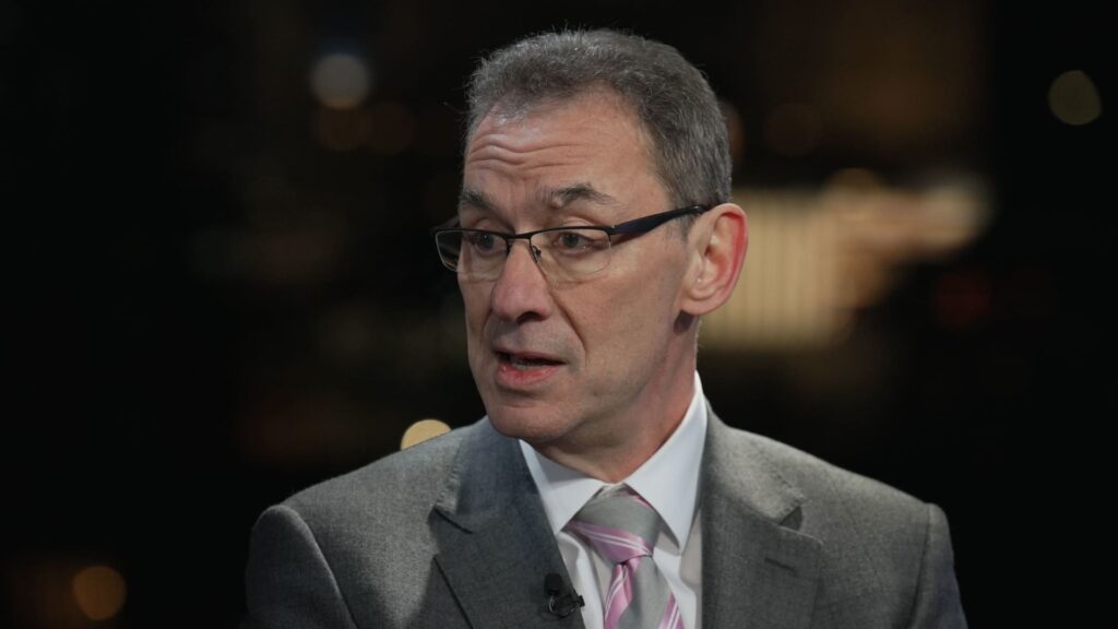 Pfizer CEO Albert Bourla speaks about street squawk at the World Economic Forum in Davos, Switzerland on January 20, 2026.