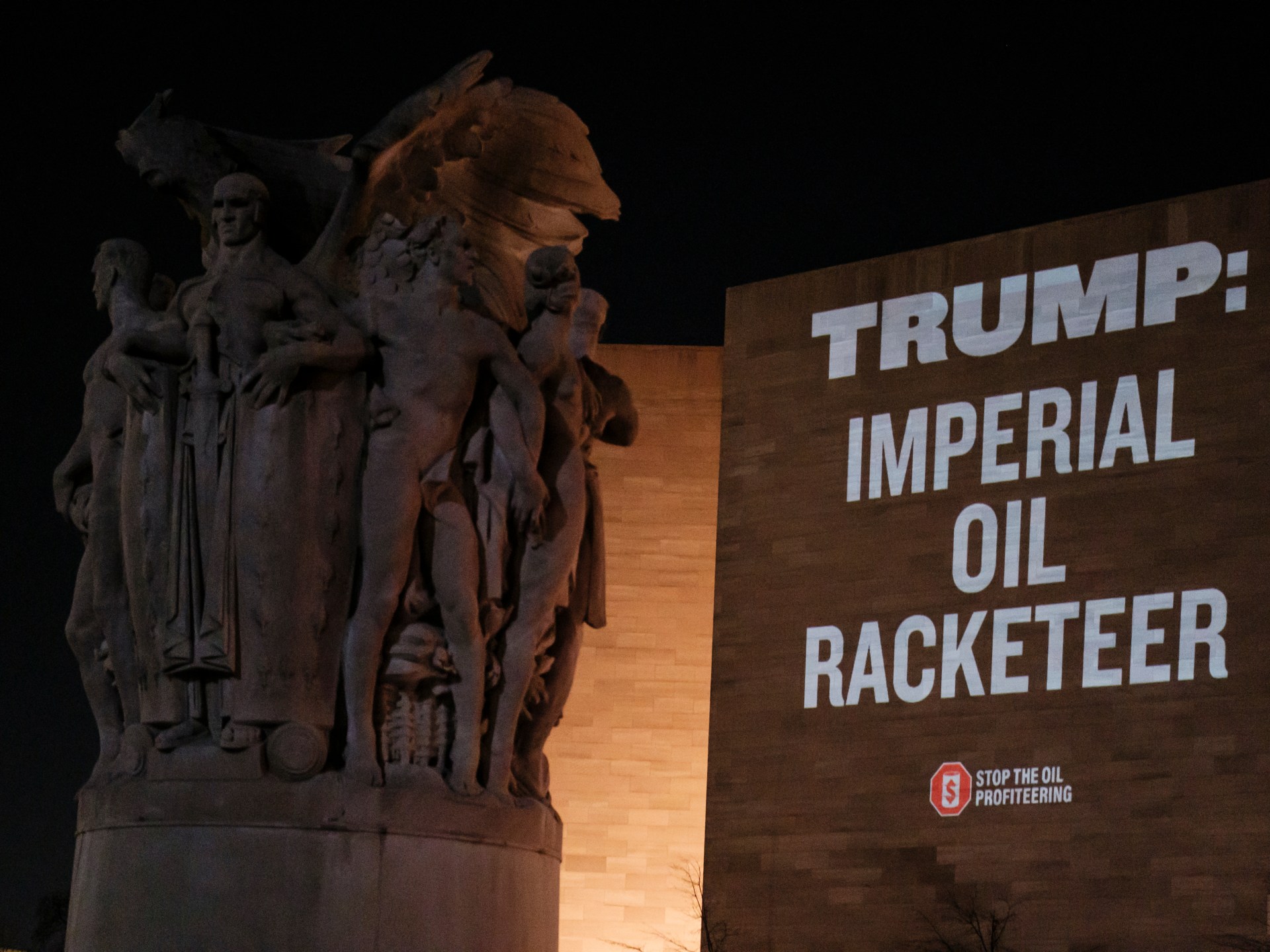 January 8, 2026, in Washington, D.C., activists stage a major plan to protest President Trump’s oil-led intervention in Venezuela and the use of U.S. tax dollars to subsidize Big Oil. [Handout/Fossil Free Media via AP]
